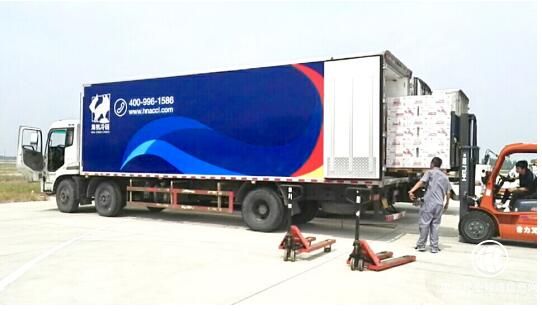 “4月29日,金鹏航空的龙虾包机抵达合肥新桥国际机场后,来自加拿大的50吨波士顿龙虾在腹舱直接登上了海航冷链的冷链车,通过我们遍布全国的800余条运输线路,迅速被运往北京上海等城市,第一时间出现在千家万户的餐桌上。我们将冷链车直接开进了停机坪,高效迅速的同时做到了真正的不断链,这是其他冷链物流公司都做不到的。”
