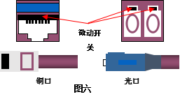 这一技术也可在光口和铜口上使用。如图六所示,它在接口上采用了微动开关,当跳线插入时,开关被推动,触发回路闭合;跳线拔出后,微动开关复位,回路断开,这样就可以实时监测链路的通断。