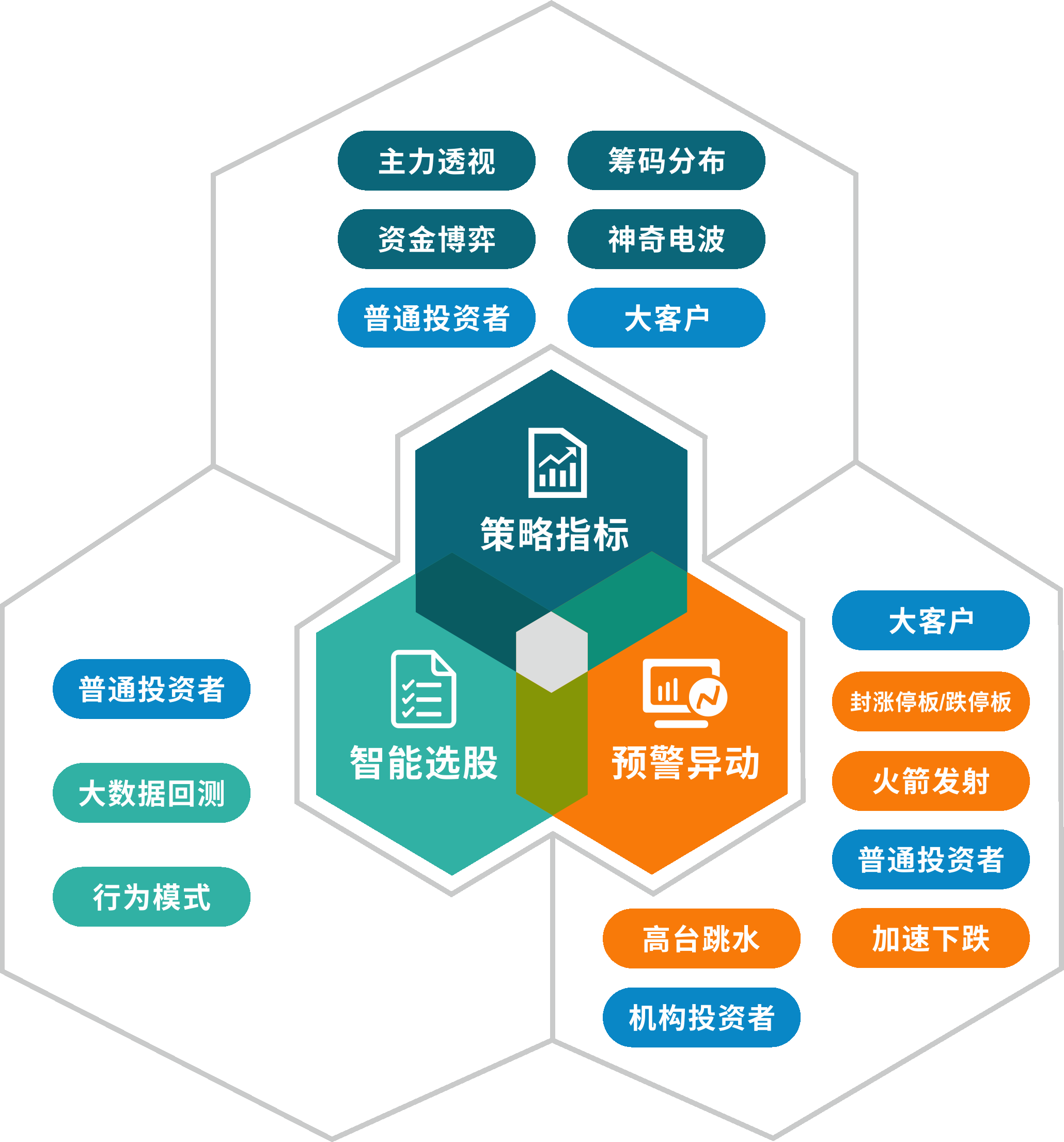 面向不同类型的投资者,系统在策略指标、异动预警、智能选股等场景都有广泛的应用。