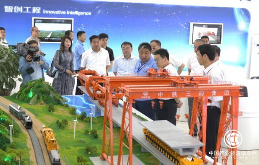在铺架基地,省工信厅领导一行认真听取了铺架项目负责人的汇报,包括项目工期进展情况、信息化管理方式,架梁设备智能化应用,钢轨智能抓取装置及视觉定位、机械运维标签管理平台、仓储物流智能管理系统、新型智能车辆识别系统、运架设备行车临测系统等。