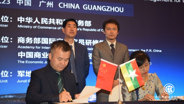 ▲军地集团广东省公司董事长胡家睿先生与缅甸签订合作意向备忘录