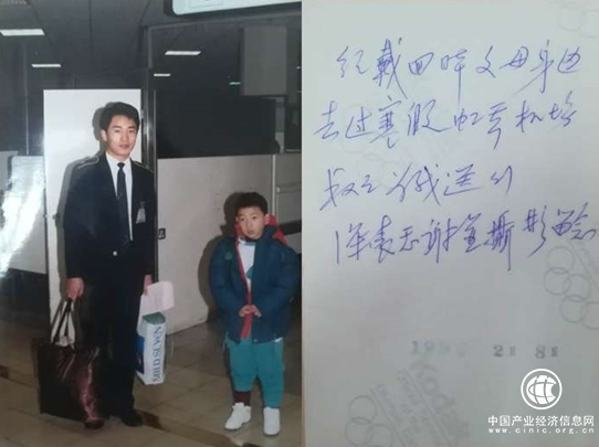 吴新在交谈时,饶有兴致拿出一张泛黄的照片,背面写着“孩子回母亲身边过寒假,虹桥机场(东航地服)叔叔替我送行,深表谢意并合影。”这是他和无陪儿童的第一次合影后,孩子父亲在照片背面所写的话。吴新回忆道,这是96年2月从上海飞东京的一位小乘客,他爸爸第一次使用这个服务,也非常不安,因为是第一次把孩子交付给陌生人,不停的询问吴新的个人信息,还确认到了东京会不会有人送出去。吴新将整个服务流程解释给他听,并告诉他,“在孩子交接到妈妈手里之前,我们工作人是不会让孩子离开我们视线的。”或许是出于孩子初次独自出行的纪念,又或者是出于家长的担忧做的“备案留底”,第一张合影就这么诞生了。”