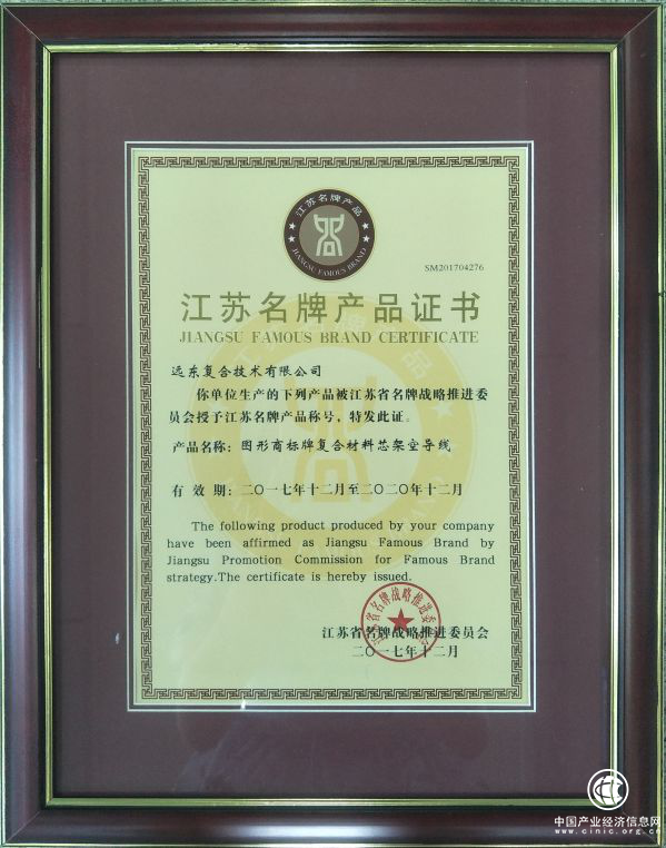 近日,依据江苏省政府《关于做好2017年江苏名牌申报工作的通知》和《江苏名牌管理办法》规定,经宜兴市初审推荐,江苏省名牌战略推进委员会组织专家评审、审议确定,远东复合技术有限公司(简称:远东复合技术)复合材料芯架空导线荣获“江苏名牌产品”称号。这是远东复合技术产品首次获得“江苏名牌”称号,具有里程碑意义。