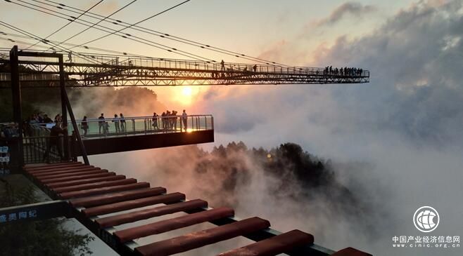 奥陶纪景区的“天空悬廊”,是世界上最长的玻璃悬挑走廊,绝对的“恐高症治愈器”,人在走,廊在抖,脚下两百米的悬崖,眼前是壮美山峦,心情一下子就开阔了。