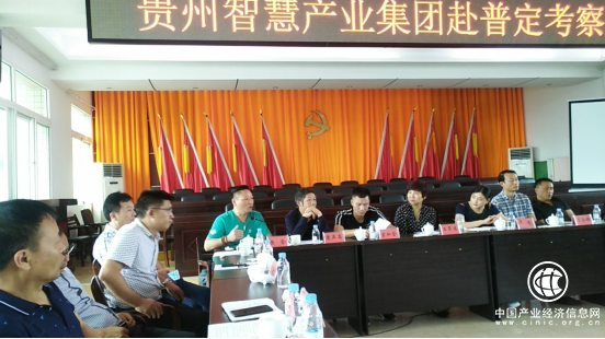 考察团各负责人一行就贵州智慧产业集团情况、食品安全云、商品采购、智慧产业园区建设、再生资源园区建设、茶叶基地建设、大健康产业园开发建设、共建普定大数据服务中心、智慧农业、智慧电力、智慧旅游、智慧医疗、智慧社区、智慧校园、户外拓展、金融服务等进行了详细的介绍并与普定县委政府负责人及各部门负责人进行了深入的交流。