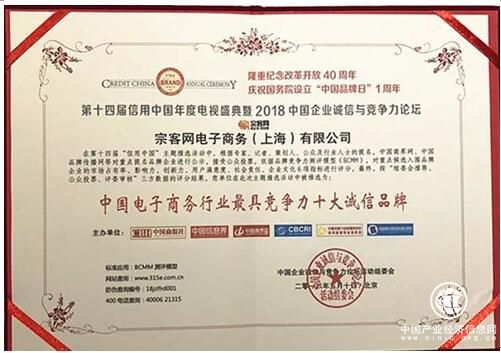 此次论坛,宗客网凭借近年来诚信创新的经营发展理念与日渐提升的企业影响力受邀出席。并在本次高峰论坛成果发布盛典上,荣获“中国电子商务行业最具竞争力十大诚信品牌”!