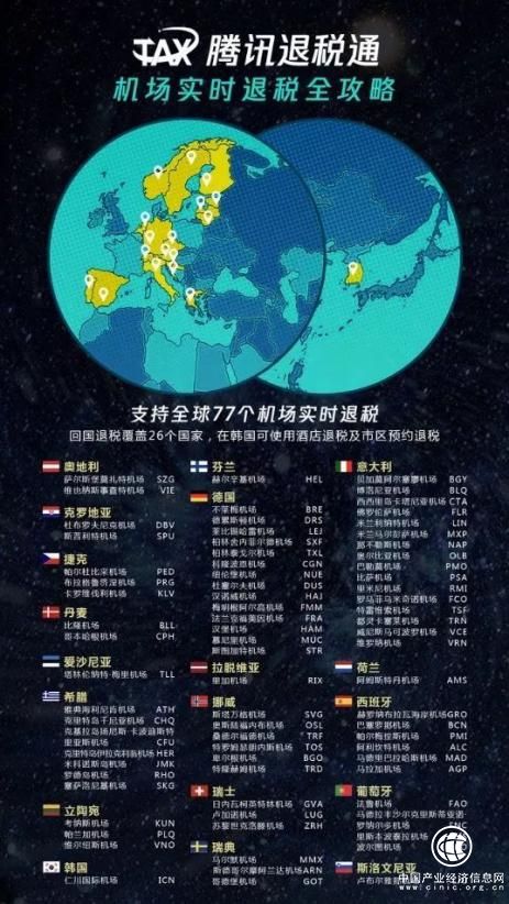截至2018年上半年,腾讯退税通已覆盖韩国、德国、意大利、希腊、芬兰等26个国家和地区,并支持在全球77个机场实时退税。中国出境游客只需用退税通小程序在相关柜台扫一扫,退税就以人民币的形式进入微信零钱包。而在韩国49家合作酒店,也能通过这一服务完成退税。