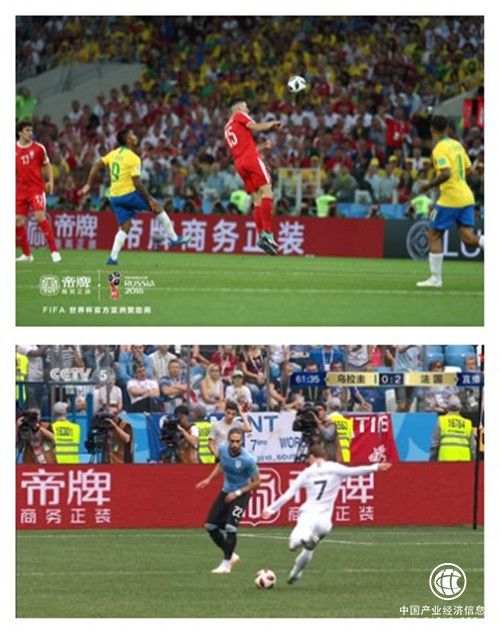 32天时间,64场比赛,观众都可以在场边的LED屏上看到“帝牌商务正装”的广告位。全球超过百亿人次在直播中看到了帝牌。6月27日,瑞典对阵墨西哥小组赛中,第60分钟,瑞典队长格兰奎斯特点球罚中扩大比分。7月6日,法国对战乌拉圭的1/4比赛时,格里兹曼在下半场一开始就一脚远射为法国队锁定了进军半决赛的胜利……类似这些经典的进球画面,球场边的“帝牌商务正装”广告位多次成为了最好的背景墙。