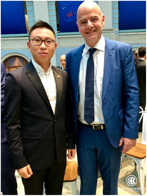 图片说明:吕锜与国际足联主席因凡蒂诺合影
