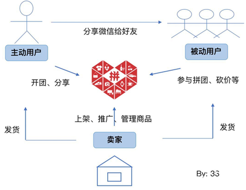 由阶段的递进,拼多多的用户群也在向上拓展,从本身只关注价格的拼团人群,到微信群内的熟人关系参与。拼多多的参与者主要包括三类: