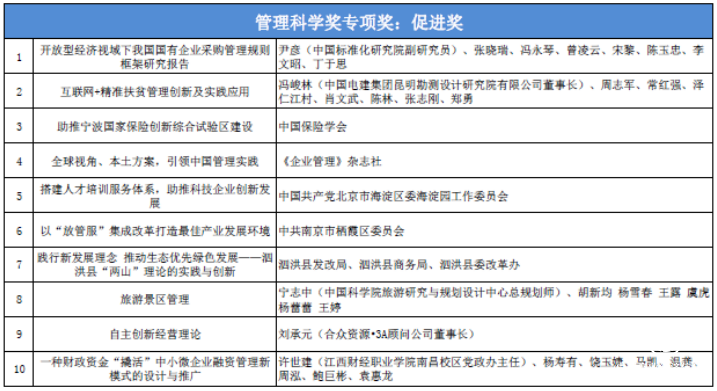 据了解,管理科学奖是依据国务院《国家科学技术奖励条例》,经国家科学技术奖励办公室批准设立的全国性科学技术奖,也是管理科学方面唯一保留奖项。