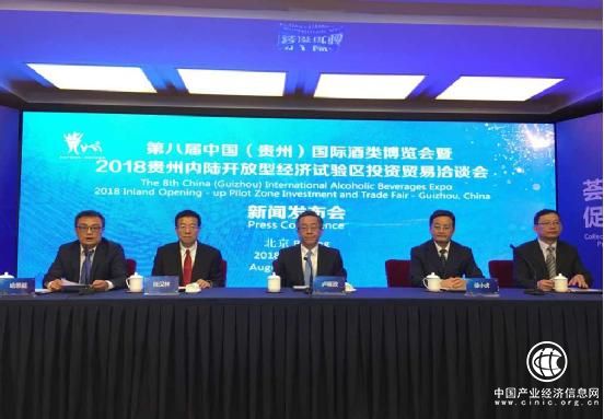 8月20日,第八届中国(贵州)国际酒类博览会暨2018贵州内陆开放型经济试验区投资贸易洽谈会(以下简称第八届酒博会暨2018贵洽会)新闻发布会在北京举行。贵州省人民政府副省长卢雍政出席新闻发布会,全方位介绍了第八届酒博会暨2018贵洽会筹备进展、贵州推进内陆开放型经济试验区建设等有关情况。中国食品土畜进出口商会副会长徐小虎出席了新闻发布会并回答了记者提问。贵州省贸促会常务副会长、省博览局局长张汉林、贵州省投资促进局局长马雷分别就第八届酒博会暨2018贵洽会特色亮点、贵州开展产业大招商等热点问题回答了记者提问。贵州省经信委副巡视员徐荣参加了新闻发布会。