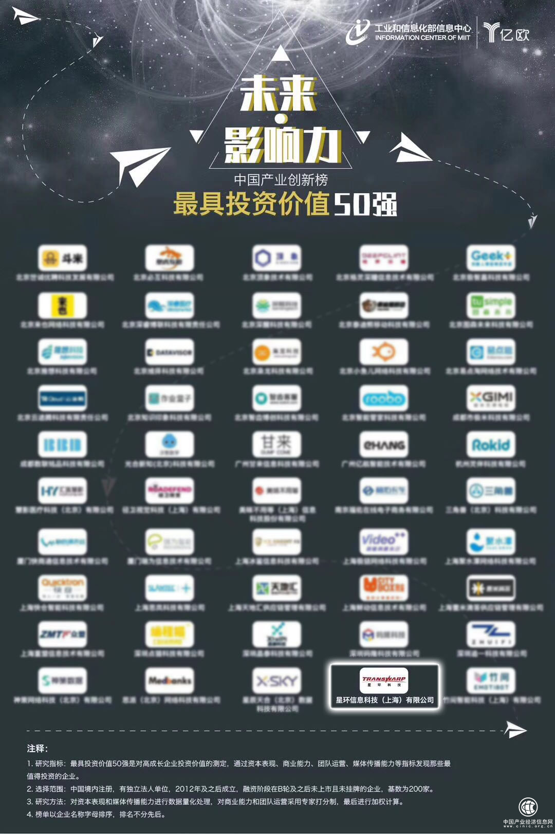 2018年8月19日,工信部信息中心与亿欧智库在2018“创客中国”互联网+大数据创新创业大赛暨产业投资峰会上联合发布了“未来·影响力”中国产业创新榜。星环科技入选中国产业创新榜“最具投资价值50强”。