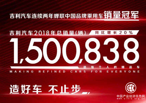 在汽车销量方面,2018年,吉利控股集团旗下各品牌累计汽车销量达215万辆,实现四年翻番。其中,吉利汽车销量、市场占有率均显著提升。仅2018年全年累计销量就达到了1,500,838辆,同比增长约20.3%,位居中国品牌乘用车销量第一。其市场占有率也由2017年的5%提升至2018年的6.3%,足见吉利家底之雄厚。