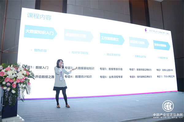 帆软决策菁英运营经理周夏雨女士介绍了目前企业大数据人才常见痛点——企业层面招人难、培养难度高;部门层面,业务部门不认可,团队规划缺乏专业指导;个人层面缺乏体系化的数据知识,而且没有优秀的案例参考。她直言:数据分析有三个关键的维度,知识框架、业务思维和实践能力,我们应该构建扎实的知识框架,深入研究业务问题,通过可行性分析,努力提高业务思维,在“实践能力= 解决思路 + 案例参考 + 工具落地”的思路的支持下不断提高业务能力。