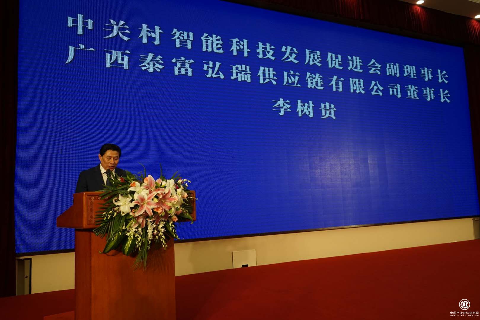 5月23日,“一带一路5G智链天下”-ISCM全球供应链创新与应用发展峰会暨智商三六零商学院启动仪式在北京举行。图为中关村智能科技发展促进会副理事长、广西泰富弘瑞供应链有限公司董事长李树贵致辞。(褚多锋 摄影)