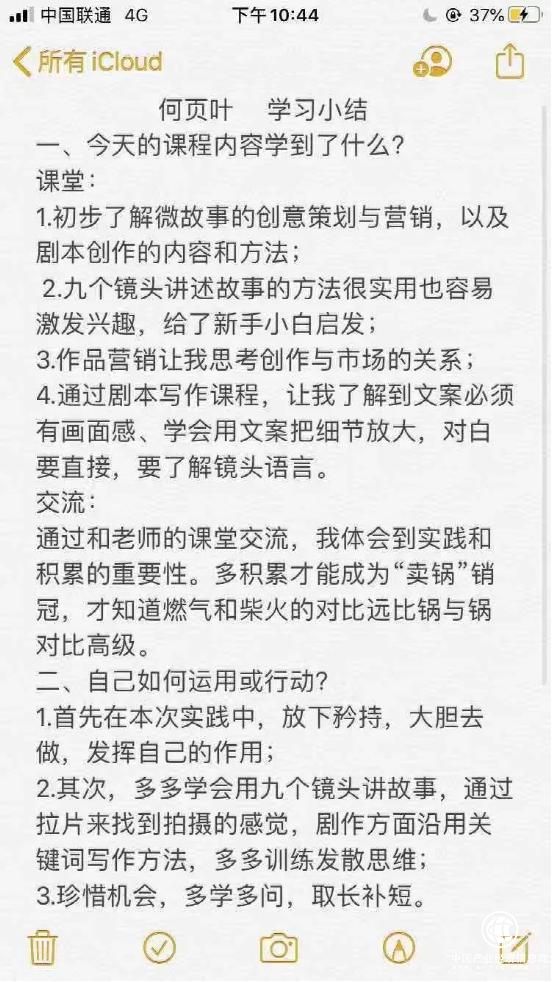 同学们每晚以小组为单位,在实践组导师的指导下圆桌研讨剧本完成脚本的创作,每个人按时上交当天的学习总结,对当天的内容进行复盘。