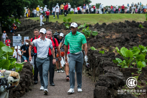 2013年,彼时的伍兹已走出了人生低谷,重新登上了世界第一的宝座。在观澜湖的盛情邀约下,伍兹首次登陆中国海口,并与2012年高尔夫世界排名第一的罗里·麦克罗伊展开了一场精彩绝伦的“观澜湖世界第一挑战赛”。