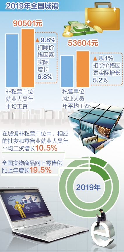 “2019年,我国经济运行总体平稳、稳中有进,就业形势保持稳定,全国城镇单位就业人员平均工资稳步增长。”国家统计局人口和就业统计司副司长孟灿文说。