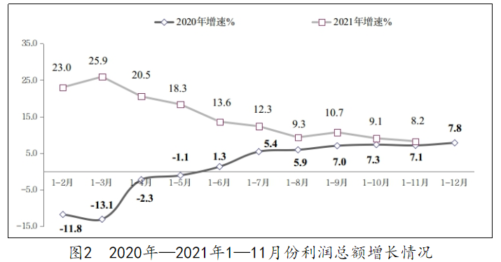 利润总额保持增长。1—11 月份,软件业利润总额 10153 亿元,同比增长 8.2%,比 1—10 月份回落 0.9 个百分点,近两年复合增长率为 7.6%。