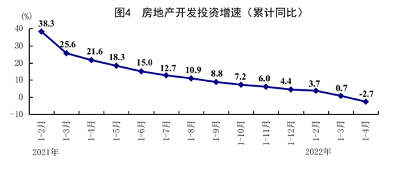 1-4月份,全国规模以上工业增加值同比增长4.0%,比1-3月份回落2.5个百分点。分三大门类看,采矿业增加值同比增长10.4%,制造业增长3.2%,电力、热力、燃气及水生产和供应业增长5.0%。高技术制造业增加值同比增长11.5%。分经济类型看,国有控股企业增加值同比增长3.1%;股份制企业增长5.8%,外商及港澳台商投资企业下降2.8%;私营企业增长5.1%。分产品看,原煤、十种有色金属等基础工业品产量分别同比增长10.5%、0.7%,新能源汽车、太阳能电池、移动通信基站设备等绿色智能数字产品产量分别增长112.7%、27.5%、25.9%。4月份,全国规模以上工业增加值同比下降2.9%,环比下降7.08%。其中,采矿业增加值同比增长9.5%,制造业下降4.6%,电力、热力、燃气及水生产和供应业增长1.5%。高技术制造业增加值同比增长4.0%。4月份,制造业采购经理指数为47.4%,企业生产经营活动预期指数为53.3%。1-3月份,全国规模以上工业企业实现利润总额19556亿元,同比增长8.5%。