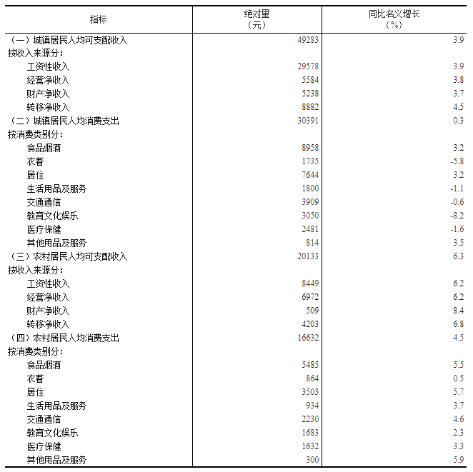 全国及分城乡居民收支数据来源于国家统计局组织实施的住户收支与生活状况调查,按季度发布。