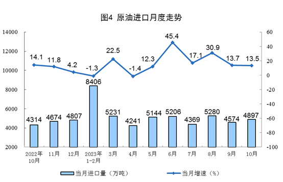 进口数据来源于海关总署,其中2023年10月份数据为快讯数据。