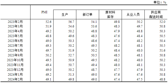 表2 中国制造业PMI其他相关指标情况(经季节调整)