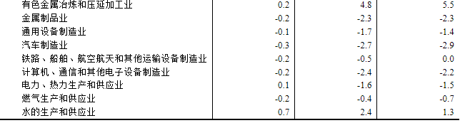 工业生产者购进价格中,建筑材料及非金属类价格下降1.4%,化工原料类和农副产品类价格均下降0.4%;燃料动力类价格上涨0.7%,黑色金属材料类价格上涨0.6%,有色金属材料及电线类、纺织原料类价格均上涨0.1%。