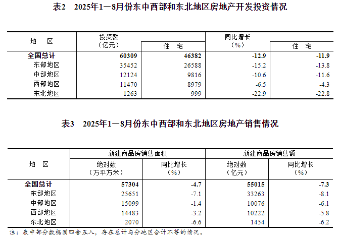 1—8月份,全国房地产开发投资60309亿元,同比下降12.9%(按可比口径计算,详见附注6);其中,住宅投资46382亿元,下降11.9%。