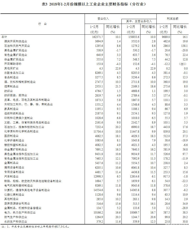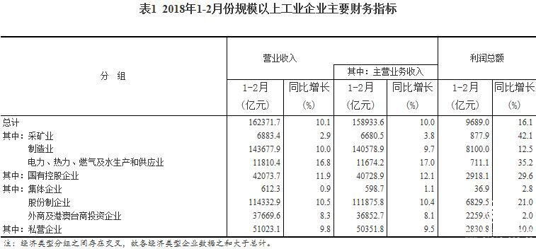 1-2月份,全国规模以上工业企业实现利润总额9689亿元,同比增长16.1%。