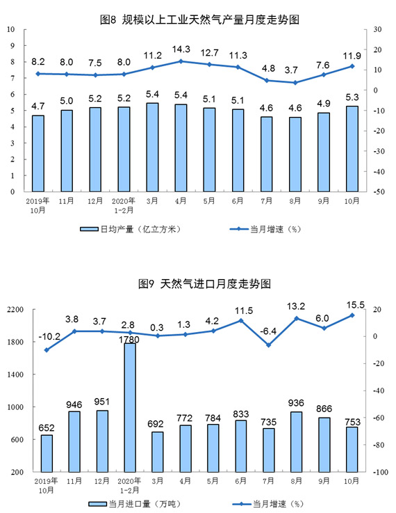 天然气进口增速明显加快。10月份,进口天然气753万吨,同比增长15.5%,增速比上月加快9.5个百分点。1—10月份,进口天然气8126万吨,同比增长4.7%。
