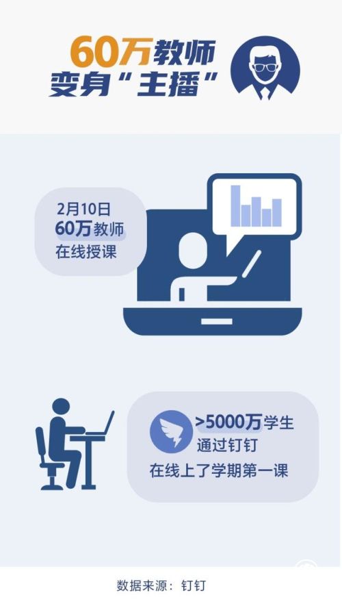 为响应教育部“停课不停学”要求,阿里巴巴发起“在家上课”计划,疫情期间,钉钉“在线课堂”功能免费向全国大中小学开放。截至1月31日,广东、江苏、河南等20多个省份加入计划,超过1万所大中小学、500万学生通过钉钉直播的方式上课;截至2月10日,60万教师在线授课,超过5000万学生通过钉钉,在线上了学期的第一课。此外,ClassIn、EduSoho、沐坤科技等在线直播平台均免费开放技术能力,提供技术支持。新东方几十万学生已经开始陆续接入新东方线上直播系统“云课堂”。