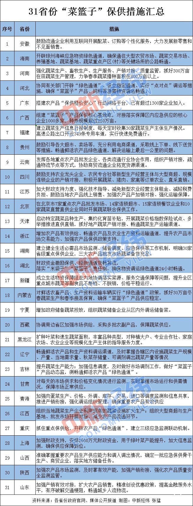 在地方层面上,31省份通过鼓励农产品线上销售、畅通运输“绿色通道”、抓好产品产销对接、加大财政支持力度等措施全力守护民众的“菜篮子”。