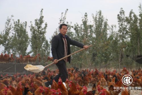 走进南召县太山庙乡冯庄村贫困户马长付的养鸡场,一片繁荣的景象,雄壮的公鸡三五十个一群,悠闲地在坡地上觅食,一群一群大白鹅不时地在鸡群中晃悠,鹅立鸡群,显得格外美丽,大棚中一排排母鸡正在孕育白皮或绿皮柴鸡蛋。