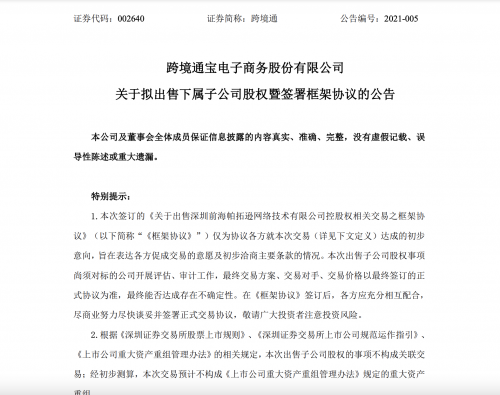1月28日,跨境通发布公告称,拟将出售旗下全资子公司帕拓逊不低于60%的股权,受让方包括邓少炜、刘永成、小米等。