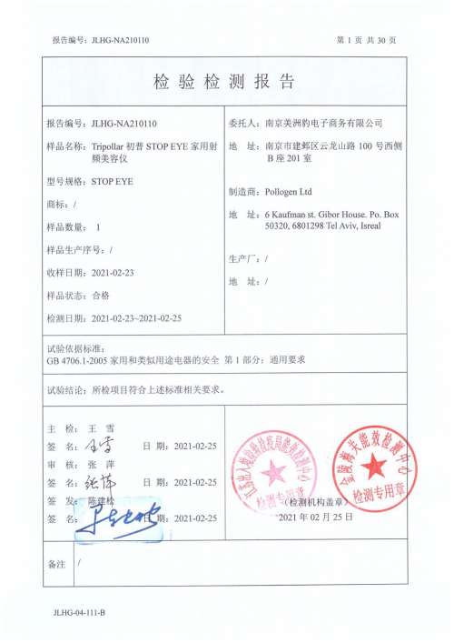 Tripollar初普再次发布声明称,媒体报道的比较实验依据的是一个推荐标准,不是国家强制安全标准。目前中国家对美容仪适用的强制性国家标准是GB4706.1-2005《家用和类似用途电器的安全》。此前的鉴定报告显示初普的产品完全符合该国家强制标准。2月23日的送检结果再次证明了这点。