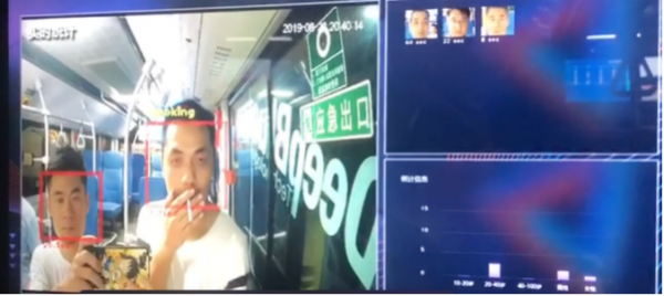 公交车属于公共区域,其乘客身份复杂,个体的异常行为会影响到全车乘客的舒适度与出行安全性。针对公交车内场景,深兰科技为熊猫智能无人车部署了异常行为分析系统,基于上文介绍的眼控广告摄像头对拍摄范围内每位乘客诸如吸烟、受伤、物品遗失,乃至偷窃等异常行为做出反馈,并在车内显示屏联动提醒。其具体功能包含: