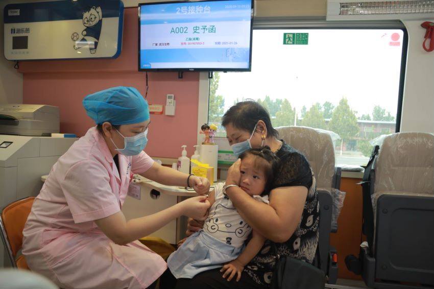 (儿童在移动接种车内接种)