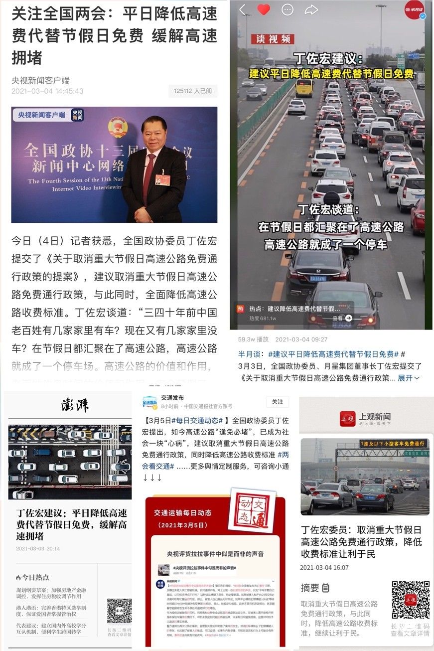 丁佐宏委员对此建议:一是取消重大节假日高速公路免费通行政策。二是在此基础上,深化高速公路收费制度改革,全面降低高速公路收费标准,惠及所有通行车辆,满足人民群众对于公共福利政策的渴求。