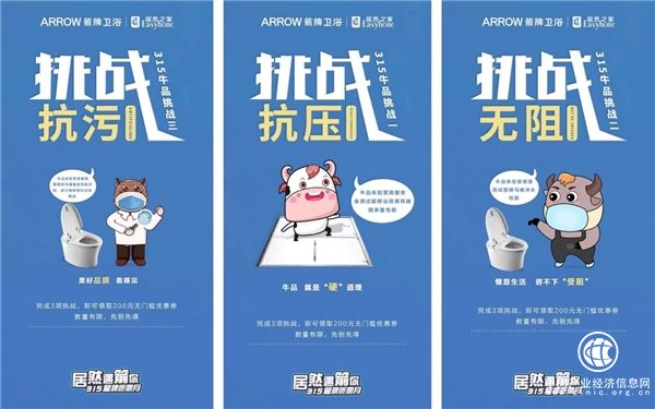 以消费者权益为基点,箭牌家居打造315箭牌质惠月:2月25日到3月15日,开启“箭康焕新 牛品认证”活动。在活动期间,箭牌家居全国寻找#箭牌牛品体验官#解锁工厂无门槛优惠券,通过参与牛品挑战,赢百元无门槛优惠券;3.15元预约“315箭牌牛牛卡”,到店任意消费领箭牌地漏ADL50T06AL/BL一个;此外还有1999智能马桶二选一、抽4999元改造焕新等诸多活动权益!