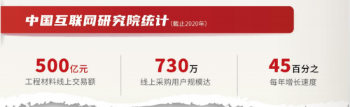 在变幻莫测的经济发展趋势中,每一位从事工程材料的商家,都是自己的“司机”,低头“拉车”,别忘了抬头看路,“司机”看路,是天经地义,什么是路?就是趋势!要顺着正确的方向走。中国互联网研究院统计数据显示,截止2020年,中国工程材料线上交易额已突破500亿元,线上采购用户规模达到750万,且每年以45%的速度增长,互联网+工程材料便是每一个工程材料从业者的必走之路!