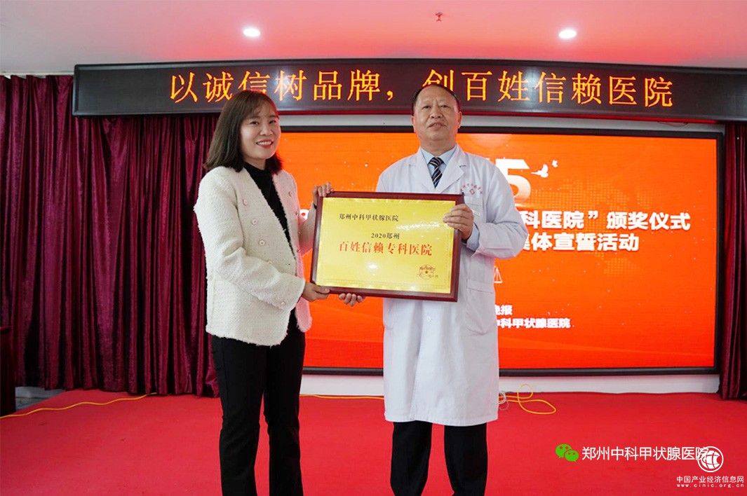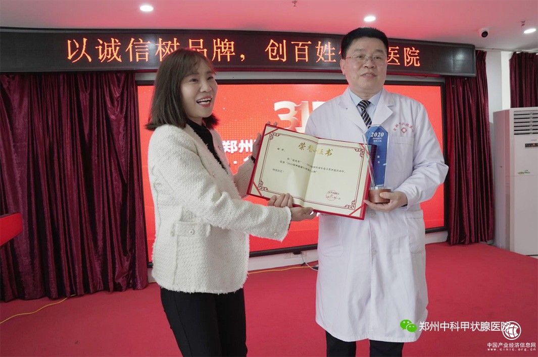 2021年3月14日,由郑州晚报主办的“2020中原健康行业年度大奖”颁奖典礼在郑州举行,备受瞩目的“2020郑州百姓信赖专科医院”、“2020郑州健康行业领军人物”重量级奖项新锐出炉。凭借精湛的医疗技术和优质服务,郑州中科甲状腺医院从数十家申报单位中脱颖而出,斩获“2020郑州百姓信赖专科医院”和“2020年郑州健康行业领军人物”称号两项大奖。