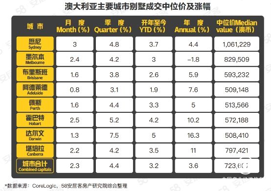 澳大利亚全国房价环比增长2.1%,悉尼房产市场领涨其他城市
