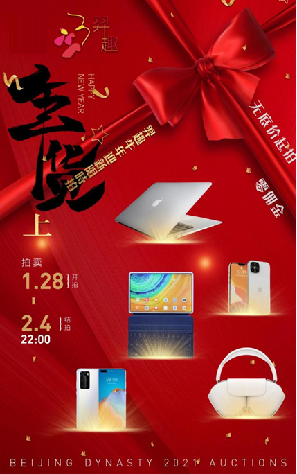 “羿趣“系列在2020年春节为做出了一个破圈的举动,首次推出了”羿趣·新春年货节“专场,推出由电子产品、名人福字/楹联、潮玩、奢侈品等拍品。