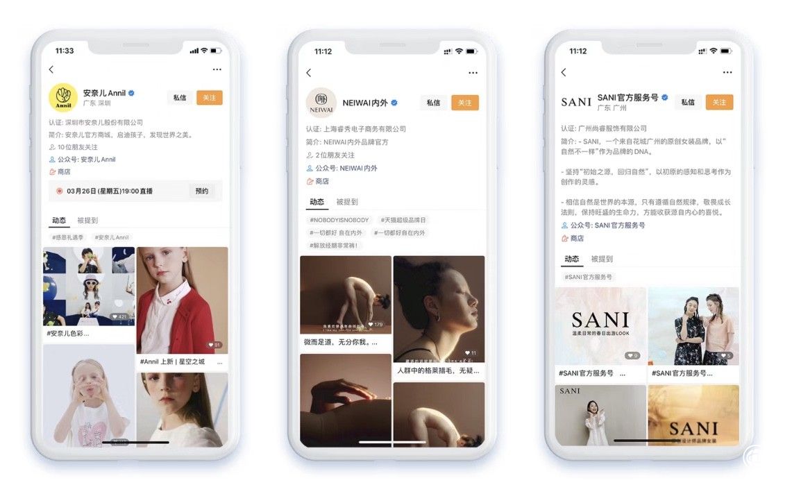 (图:安奈儿、内外、SANI视频号主页显示公众号)