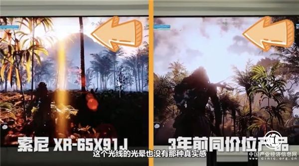 说了这么多,那么以游戏电视出圈的索尼X91J游戏体验感又如何呢?我们从三方面为大家解读。首先说色彩,以《地平线黎明时分》这款场景复杂的游戏来说,呈现色彩饱满的丛林场景对于电视来讲是一大挑战,普通电视呈现色彩艳丽却单一,抢眼却有些失真,而索尼X91J所呈现的色彩则更丰富,具有层次感,整体画面呈现也更加真实。
