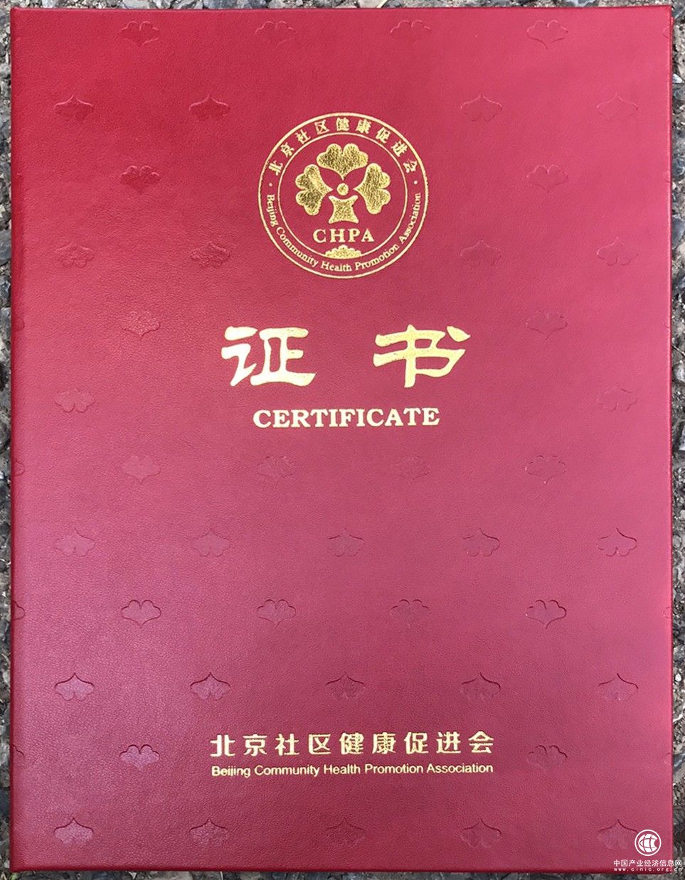 公司荣获北京社区健康促进会颁发的荣誉证书