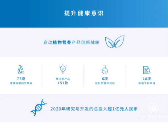 健合集团致力于成为高端营养及健康产业的领导者,而产品创新是实现这一愿景的核心。2020年,健合集团在研究与开发方面的投入超1亿元人民币,进行了77项健康科学研究;新增专利18项,累计申请专利110余项。集团在全球各地市场上市新品151款,启动植物营养产品创新战略,积极回应消费者对于营养、提升免疫力等多元化健康需求。