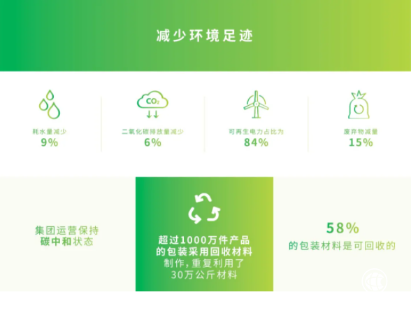 在2020年,集团不断探索环保包装材料。2020年集团大力支持循环经济,超过1000万件产品的包装采用回收材料制作,重复利用了30万公斤材料,还推出了采用甘蔗渣原料且能生物降解的环境友好包装,采用100%回收材料且可循环的玻璃瓶。合生元奶粉在中国也即将进行升级,预计用纸量至少较上一年减少2000吨。